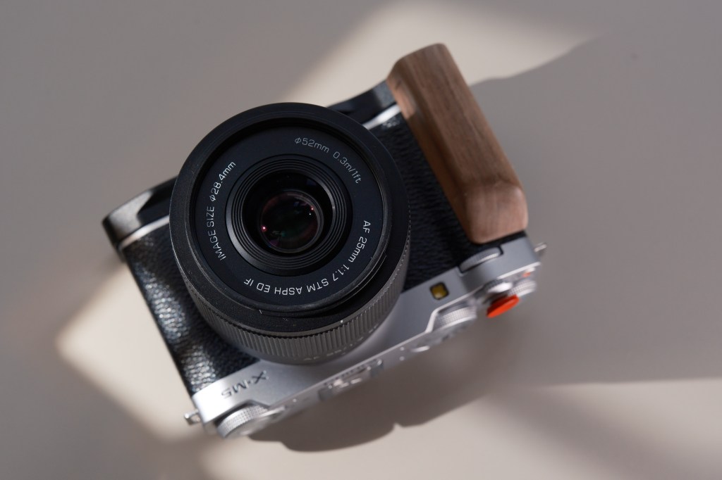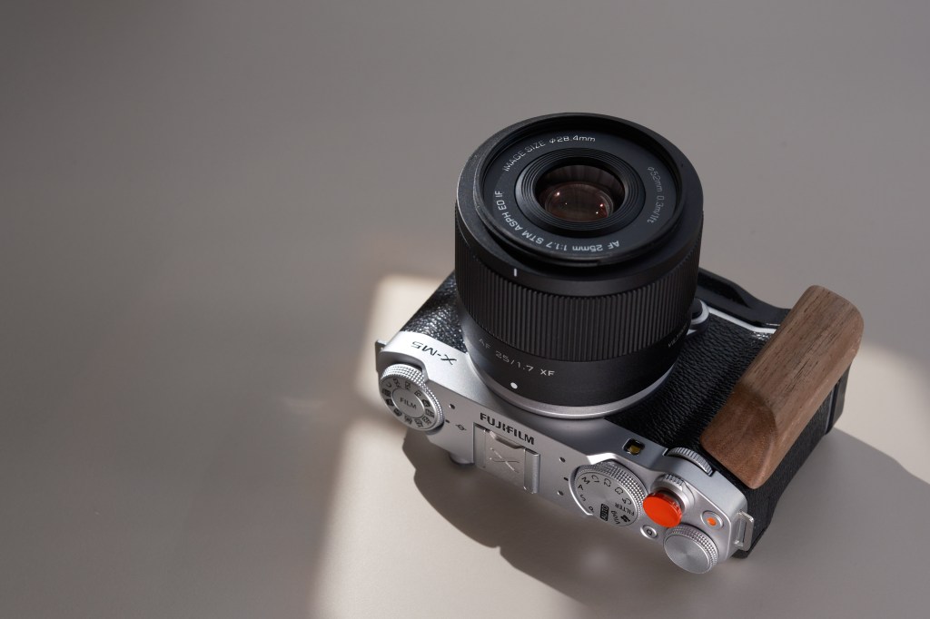 Overall, it feels comfortable to hold and pairs nicely with the smallest Fuji camera, the X-M5. And yes, it comes with a plastic petal lens hood.